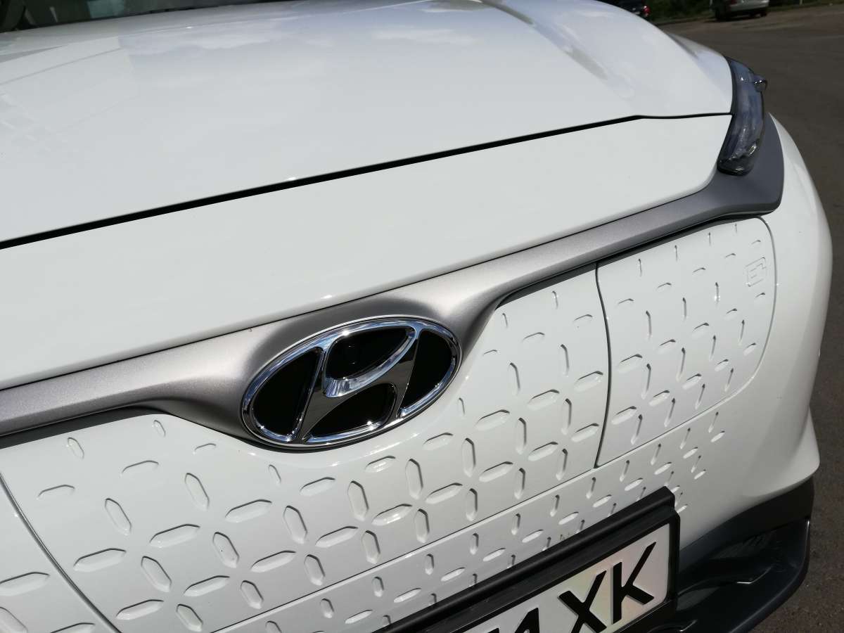 Внешне Kona electric почти ничем не отличается от других своих модификаций – бензиновых и дизельных – за исключением глухой фальшрадиаторной решетки. По понятным причинам она герою нашего теста попросту не нужна. Традиционно для многих электромобилей здесь расположен блок зарядного устройства, скрывающийся за незаметным лючком. Глухой передок выглядит попроще и теряет в фактурности, нежели машины с обычной радиаторной решеткой, зато позволяет безошибочно отличить Kona electric в потоке. Kona изначально задумывалась с экстравагантным дизайном, поэтому электромобиль просто вписался в данную концепцию. Впрочем, кому этого мало, могут заказать крышу иного цвета, получив таким образом двухцветную окраску кузова.