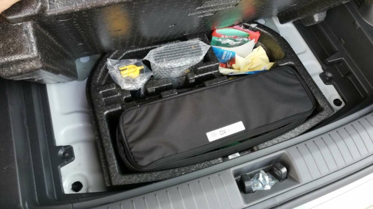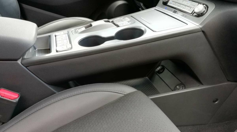 Центральный тоннель оказался “парящим” – он словно мост перекинутый от центрального подлокотника к торпедо. Под ним скрывается вместительная полка с портами для подзарядки смартфонов и гаджетов (USB вход и “прикуриватель” на 12V). Вообще, свободным пространством инженеры распорядились грамотно, поэтому не чувствуя себя стесненным можно найти множество ниш и боксов для размещения мелких вещей.