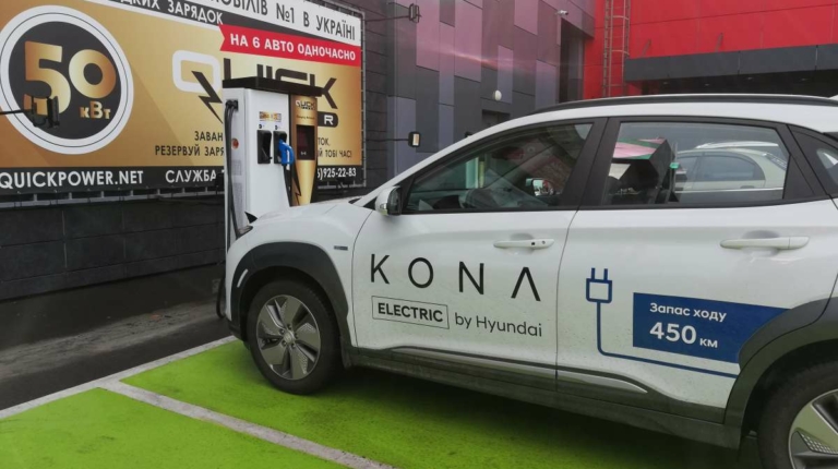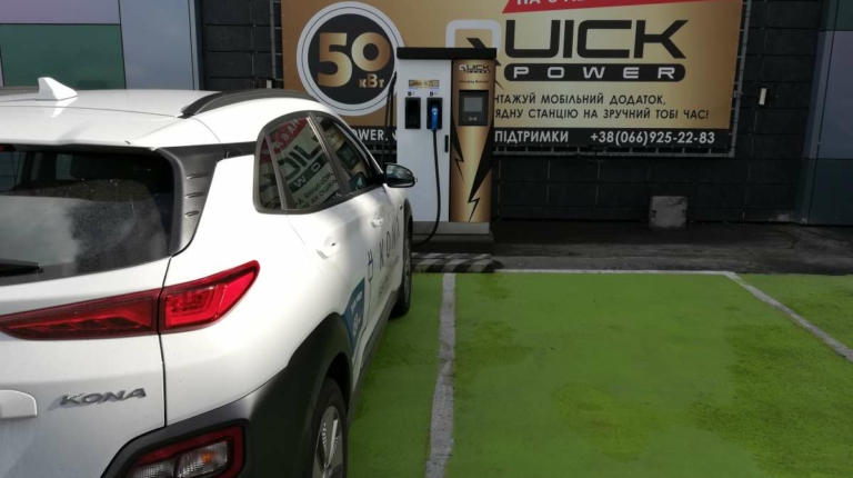 Ну а что касается подзарядки, то восполнить запас в батарее я отправился на новую “заправку” сети Quick Power c портом Combo. За полчаса запас хода удалось увеличить на 100 км, а примерно за 45 мин заряд батареи был пополнен 47% до 88%. Дальше, как и следовало ожидать, скорость зарядки упала, да и времени на нее у меня больше не было. Борт-компьютер показал при этом 426 км пробега – еще дней пять кататься и не заботиться о “дозаправке”. Стоимость такой зарядки – 257 грн.