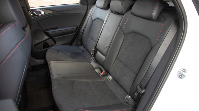 Открываю двери – они здесь, классические рамочные (у концепта, напомню, рамок не было) – и сажусь на задний ряд. Да, дверной проем заужен, так что с головой придется аккуратнее, но в остальном сзади никакого дискомфорта. И самое главное – я свободно помещаюсь по высоте, даже немного места остается. В остальном пространства как в обычном ceed. Не с избытком, но достаточно по меркам класса, все же это С или максимум С+ сегмент. То же и с опциями комфорта: свои дефлекторы обдува, карманы в дверях, двухступенчатый подогрев сидений. А в качестве опций может быть и панорамная крыша. Как не смотри, но все эта фишка больше для задних пассажиров.