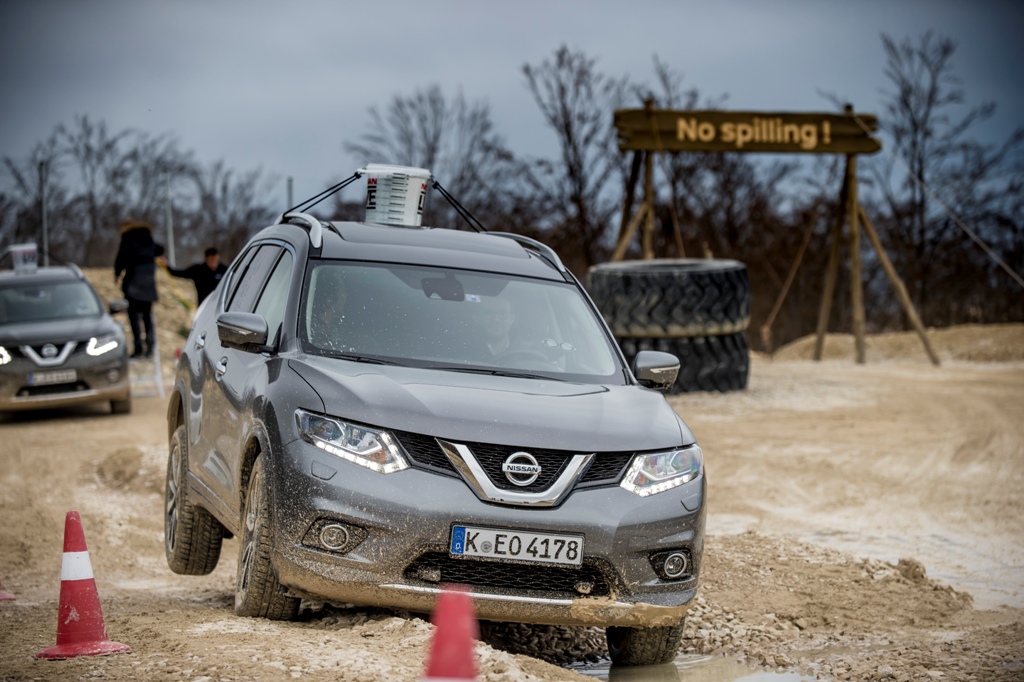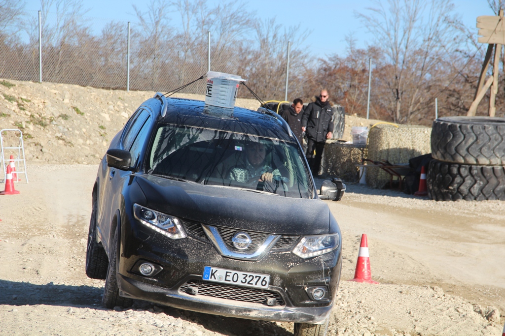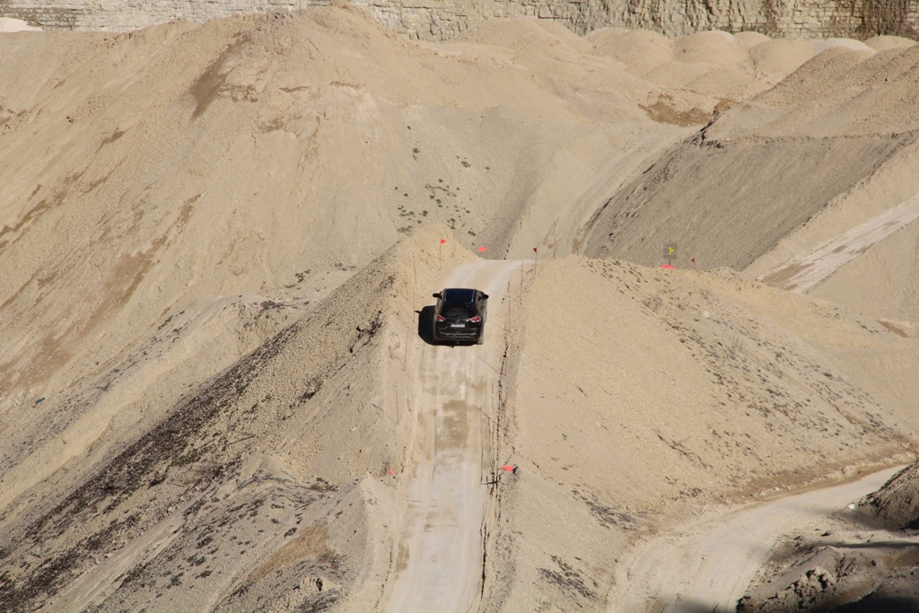 Оскільки Nissan X-Trail T32 добре знайомий переважній більшості журналістів, організатори тест-драйву кросовера з новим мотором, підійшли до позашляхових випробувань із фантазією. Локацією було обрано кар’єр, поруч з яким обладнали ігрову ділянку. Суть – поєднати приємне з корисним, щоб і погратися, і в здібностях Ікс-Трейла переконатися.