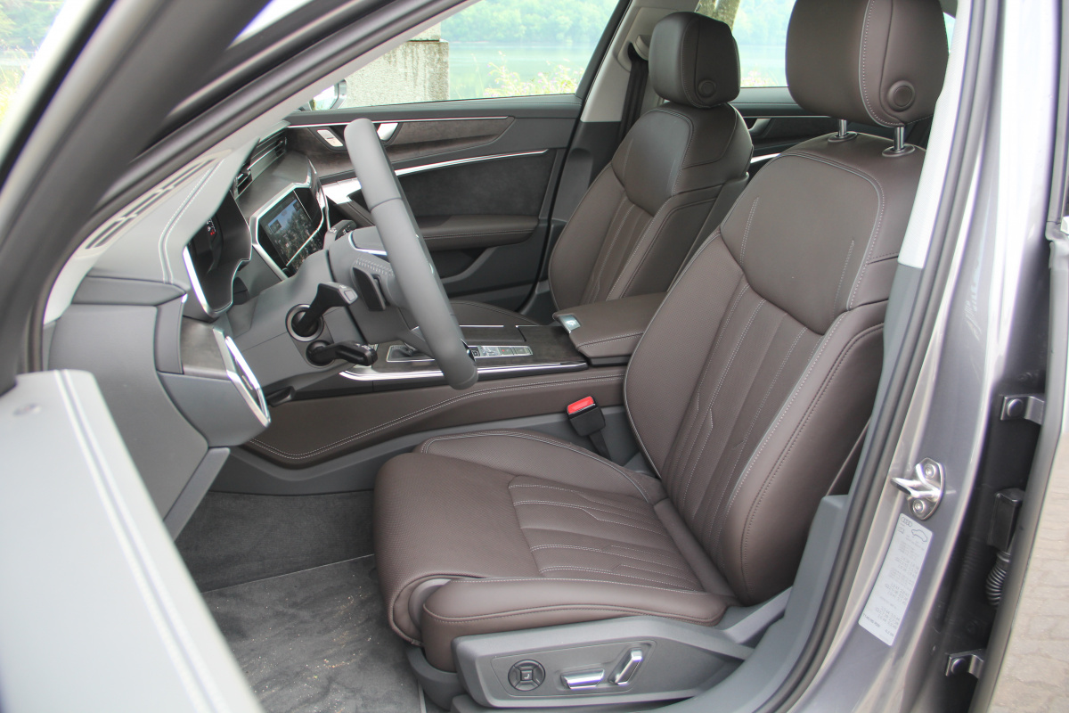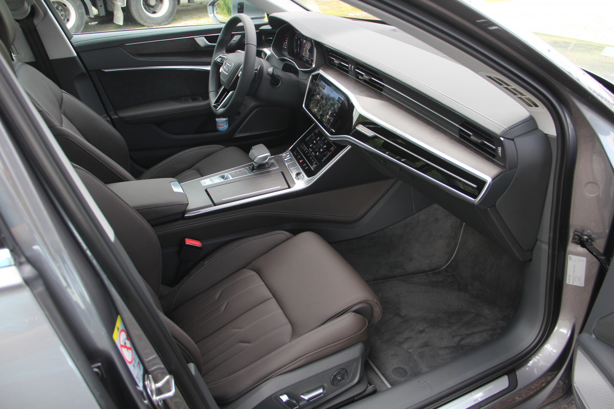 Моим первым выбором стала топовая бензиновая версия с солидным шильдиком 55 TFSI (напомню, это новая система маркировок у Audi). 340 сил и 500 Нм – такая A6 едет быстро, охотно ускоряется с любых скоростей, даже когда стрелка спидометра находится далеко за сотней. Еще бы!, ведь на пик момента двигатель выходит уже с 1370 оборотов! При этом управляется седан очень легко, послушно и я бы сказал интеллигентно. Настоящий бизнес-класс с легкими нотками спортивности, в котором автомобиль играет роль надежного помощника и в любой момент охотно помогает тебе потрафить своим драйверским амбициям. Ведь здесь уйма электронных ассистентов, которые постоянно следят за ситуацией вокруг автомобиля и превентивно подсказывают, направляют на верный путь, а иногда и страхуют от опасности столкновения, окажись на пути другой автомобиль или нерадивый велосипедист. Но даже и без их помощи новая A6 отлично прописывает повороты, филигранно следуя заданной траектории. Есть в этом заслуга и опциональных шин размерности 255/35.