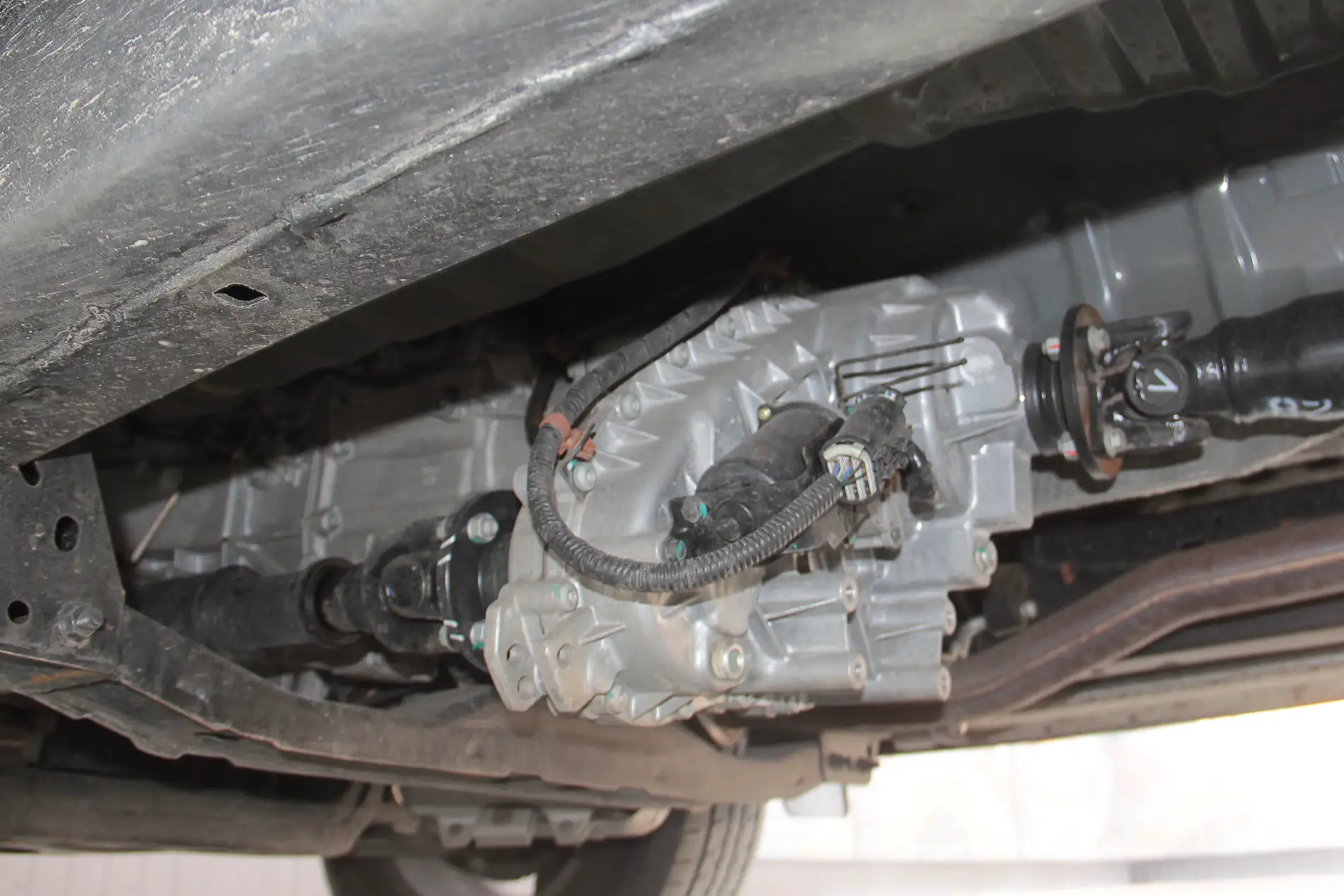 Кстати, кроме шин я бы еще позаботился и о защите снизу. Потому как картер двигателя здесь почему-то прикрывает пластик, а раздатка хоть и упрятана “в раму” и за массивную поперечину, больше ничем не защищена. А ведь по бездорожью ездят не только вперед!