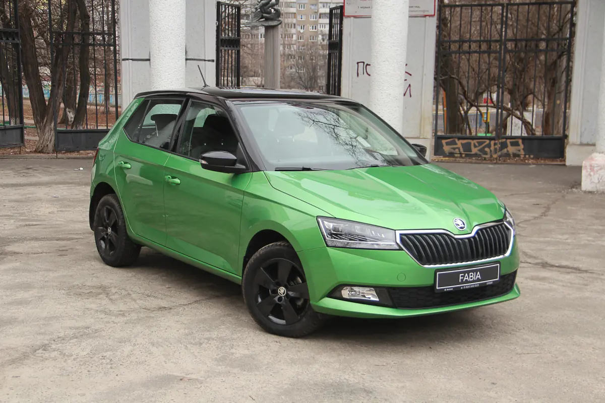 Образно кажучи, наріжним каменем змін стала решітка радіатора, яка отримала додаткові кути на краях. Утім, посміхатися навколишньому світу Fabia не дуже поспішає, і, як і раніше, суворо дивиться на світ світлодіодними фарами. Самі фари трохи звузили знизу. Іншим малюнком обзавелася і решітка внизу переднього бампера. Загалом спереду Фабія стала схожою на новітню Skoda Scala. На цьому зміни спереду закінчуються і можна заглянути на корму. Тут у нас трішки оновлений бампер – у його кутах з'явилися вузькі смужки катафотів, а також ліхтарі без вираженої чорної окантовки. Те, що додалися нові кольори кузова і колісні диски розписувати не буду – це класика будь-якого оновлення. А загалом, на знання переліку оновлень можна загадувати не найпростіші загадки і "вгадайки". На тест нам дісталася машина з комбінованим забарвленням: чорний дах із чорними стійками і насичено-зелений колір інших частин автомобіля. Доволі "соковита" комбінація!