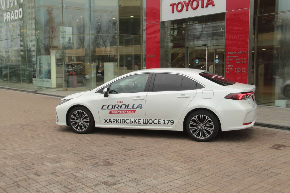 На наш небольшой сравнительный тест Тойота Центр Киев “Автосамит” на Харьковском предоставил обе машины в топовых комплектациях Style. C одной стороны, это вполне логично – всегда хочется продемонстрировать максимальные возможности и оснащение модели. Но, вместе с тем, гибридная Corolla предлагается только в версиях Active и Style.