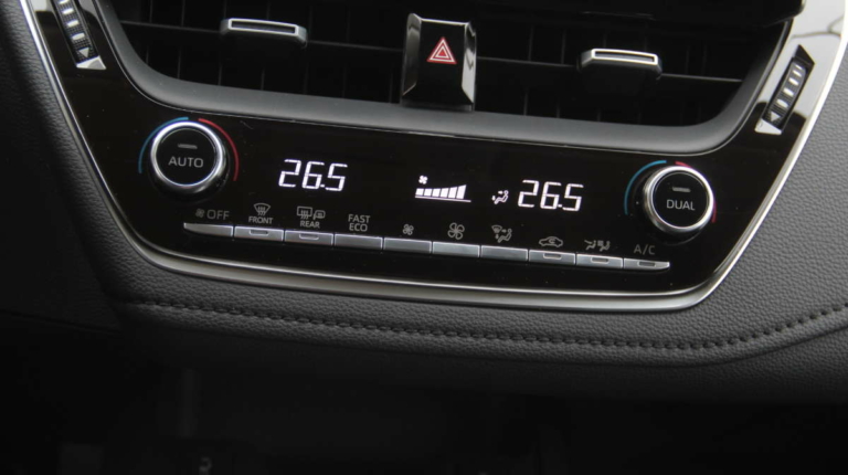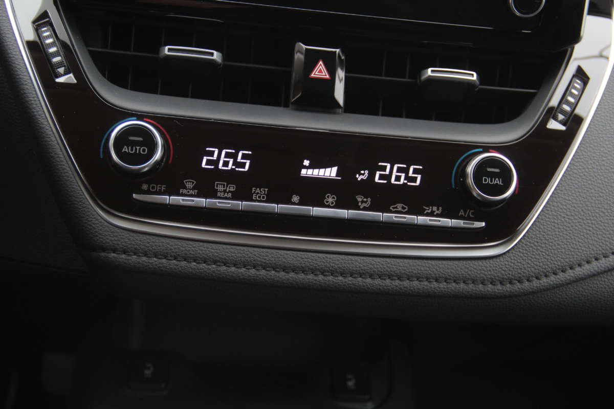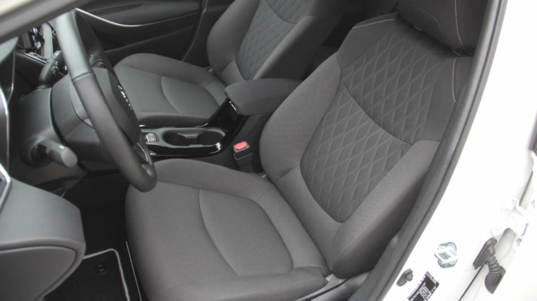 Сначала я сажусь за руль бензиновой Короллы. Приятная тканевая обивка сидений с тиснением в ромбик (почему-то подсознательно ждешь тут уже кожаного салона), комбинированная приборная панель с крупным цифровым экраном на 7 дюймов (прерогатива только версии Style), отдельно стоящий экран мультимедийной системы, двухзонный климат-контроль. Сразу обращает на себя внимание внимание к мелочам и хорошее качество материалов – опять же, чувствуется прогресс по сравнению с предшественником.