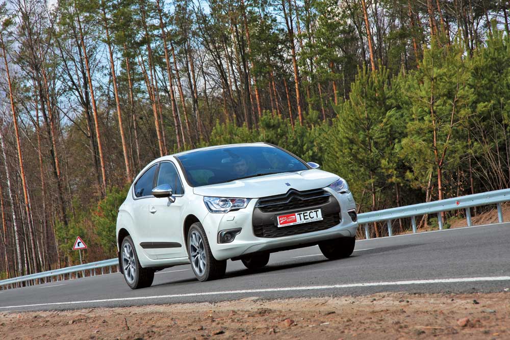 Несмотря на совершенно легковую внешность хэтчбека Citroen DS4, дорожный просвет здесь составляет ни много ни мало 170 мм. С таким клиренсом парковки на тротуарах и поездки по «легкой» грунтовке не проблема. Кроме того, снизу двигатель закрыт довольно добротной металлической защитой. Несмотря на высокий кузов, управляется машина хорошо. Конечно, в этом есть заслуга опционных колес – низкопрофильных шин 225/45, надетых на 18-е колесные диски. За выкрутасами на дороге следит стандартная система стабилизации курсовой устойчивости. Конечно, ее можно отключить, но, она автоматически активируется на скорости 50 км/ч.