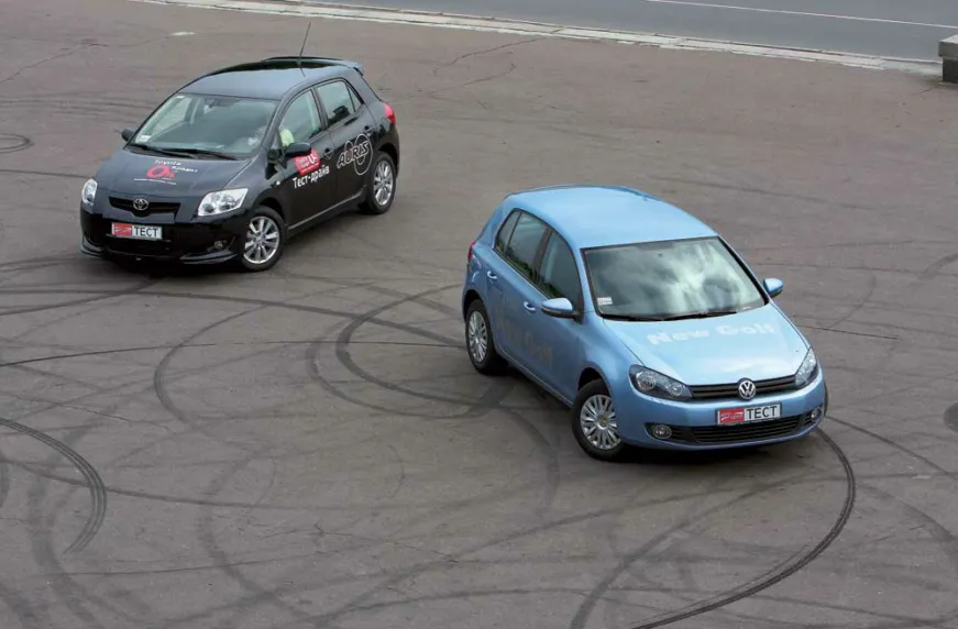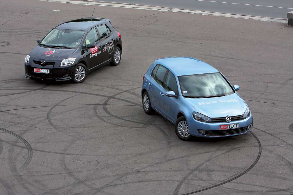 Старт на Auris получается гораздо бодрее. Начало ускорения очень уверенное и напористое. Сказывается превосходство в уровне тяги. Однако момент перехода со ступени на ступень у обычного «робота» Toyota занимает слишком много времени, и Auris на прямике отстает от Golf. Перевод японской коробки в спортивный режим нажатием кнопки Es немного улучшает положение, однако дотянуться до Volkswagen все же не получается. Гольфовский «робот» DSG с двумя сцеплениями идеально точно и без промедлений перебирает передачи, а в спортивном режиме выжимает из спокойного мотора все соки. Да и высшая ступень столь длинная, что на трассе даже не самый современный двигатель «ест» лишь 5,5 литра (на 0,4 литра меньше, чем Auris). В городе «аппетит» все же меньше у Toyota (8,5 против 8,8 л/100 км).
