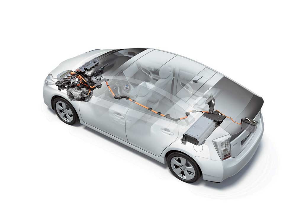 Силовая установка Hybrid Synergy Drive (HSD) состоит из бензинового двигателя, электромотора, генератора, вариатора и управляющей электроники. ДВС работает по циклу Аткинсона. На такте сжатия впускной клапан закрывается чуть позже, позволяя вытолкнуть часть топливной смеси обратно во впускной коллектор. Это уменьшает насосные потери, а главное, возможна большая степень сжатия и эффективность сгорания топлива. Но меньший его объем не позволяет достигать высокой пиковой мощности. Зато существенно улучшаются экономичность и чистота выхлопа. Генератор помогает преобразовывать энергию торможения в электрику. Интересно, что суммарная мощность ДВС и электромотора не равна арифметическому сложению их 99 и 82 л. с., а составляет 136 л. с. Объясняется это сложным алгоритмом использования мощности каждого из моторов в разных режимах движения. А недавно в Страсбурге прошли первые тесты версии Prius Plug-in Hybride, то есть с возможностью подзарядки батареи от внешнего источника. Сотня таких машин будет проходить испытания; проверят и новые станции для подзарядки.