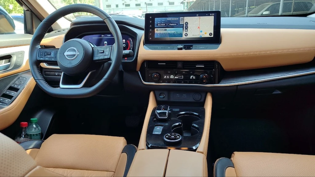 Щодо комплектації, то вже кілька різних людей, які прицінюються до авто такого сегменту, сідали в нашу машину захоплювались рівнем оздоблення та оснащення. Особливо справляє враження яскравий салон із натуральної шкіри. Та при цьому багатьох дивує, що при такому рівні оснащення наш X-Trail не має вентиляції сидінь. Більше того, таке не пропонується навіть в якості опції за доплату. Хоча шкіряне оздоблення має перфорацію, що допомагає в спеку.