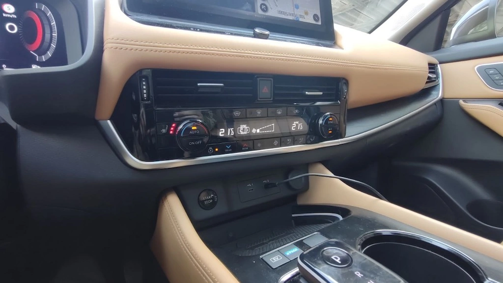 Для початку повноцінної роботи клімат-контролю в режимі обігріву потрібно лише пару хвилин. Дуже швидко в салон починає поступати тепле повітря, адже нагрівається воно не від охолоджувальної рідини ДВЗ, а від окремого нагріваючого елемента. Не потрібно чекати, коли двигун внутрішнього згоряння вийде на робочу температуру. Та власне цю температуру навіть подивитись нема де. Такого індикатора в гібридному X-Trail ePower просто не передбачено. Адже гібридна установка машини повністю автоматично керує алгоритмом увімкнення і вимкнення ДВЗ.
