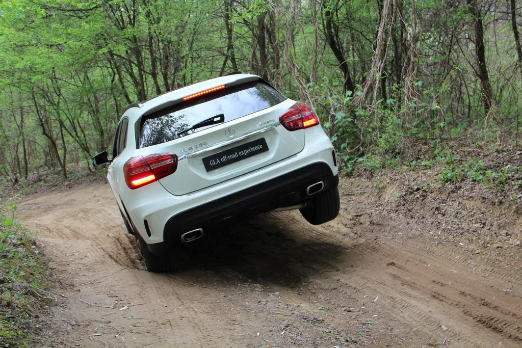 Казалось бы, стильный и элегантный Mercedes-Benz GLA сложно представить за пределами асфальта, но данное заблуждение быстро было развеяно на внедорожной трассе, специально подготовленной организаторами теста.