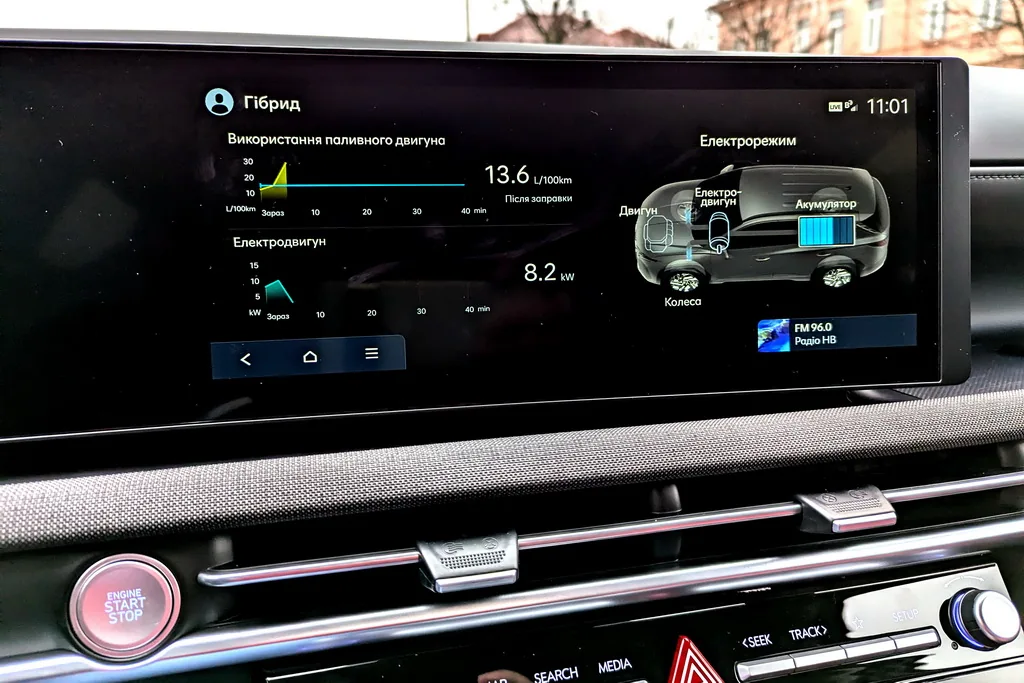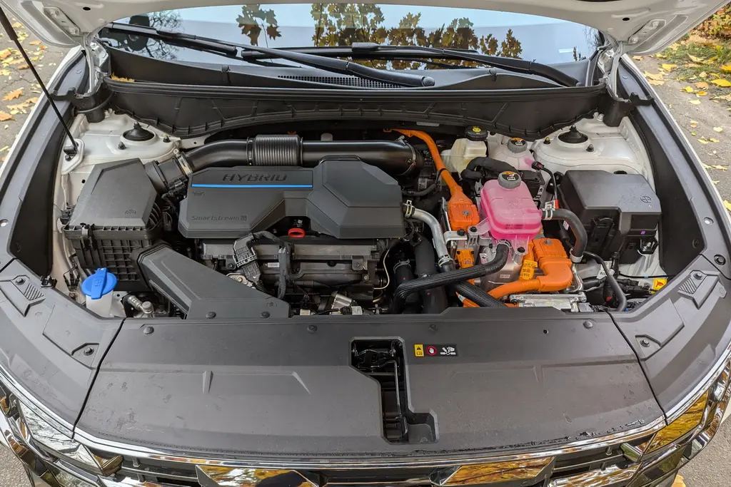 Tucson постачається в Україну з бензиновими, дизельними та гібридними силовими агрегатами. Вперше українським клієнтам запропонований бензиновий 2.5 GDi на 190 к.с., який поєднується із 8-ступеневою автоматичною трансмісією. Але нас, в першу чергу, зацікавив гібридний варіант.Зовні відрізнити гібрідну версію від бензинового або дизельного Tucson можна лише по лаконічному напису Hybrid на багажнику. Оскільки це класичний паралельний гібрид, а не PHEV, то жодних додаткових люків крім люку бензобака в нашому кросовері немає. Під капотом тестового Tucson Hybrid розташувався турбований бензиновий двигун Smartstream 1.6 T-GDi потужністю 160 к.с. і крутним моментом 265 Нм, а також електромотор потужністю 65 л. Сумарна потужність даної силової установки 215 к.с., а момент, що крутить, досягає 367 Нм. Двигун має пряме впорскування палива, турбонаддув та фірмову систему безперервної зміни фаз газорозподілу CVVD (Continuously Variable Valve Duration).
