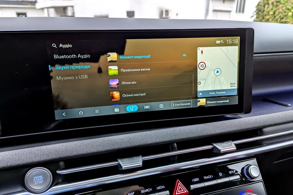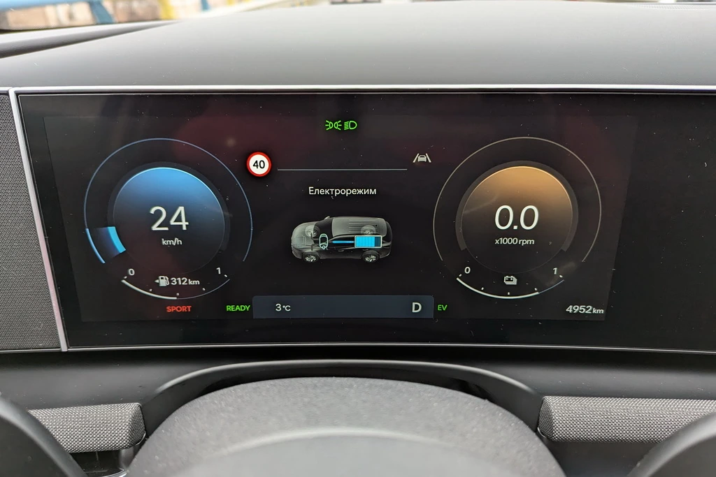 За старт з місця та рух без навантаження відповідає електромотор. А у разі потреби електроніка підключає ДВС. За процесом роботи гібридного силового агрегату та розподілом тяги можна спостерігати в режимі реального часу на обох дисплеях. На звичайній дорозі можна використовувати режим Eco або Sport, а вирушаючи на прогулянку на природу, можна активувати режими Sand, Mud і Snow. Цікаво, що відмінності у проведенні машини в Eco і Sport майже непомітні, і про їхній вибір нагадує, хіба що, інший колір приладів.