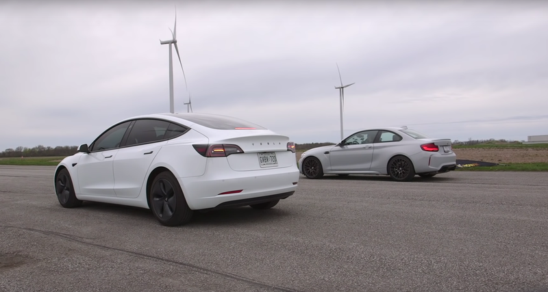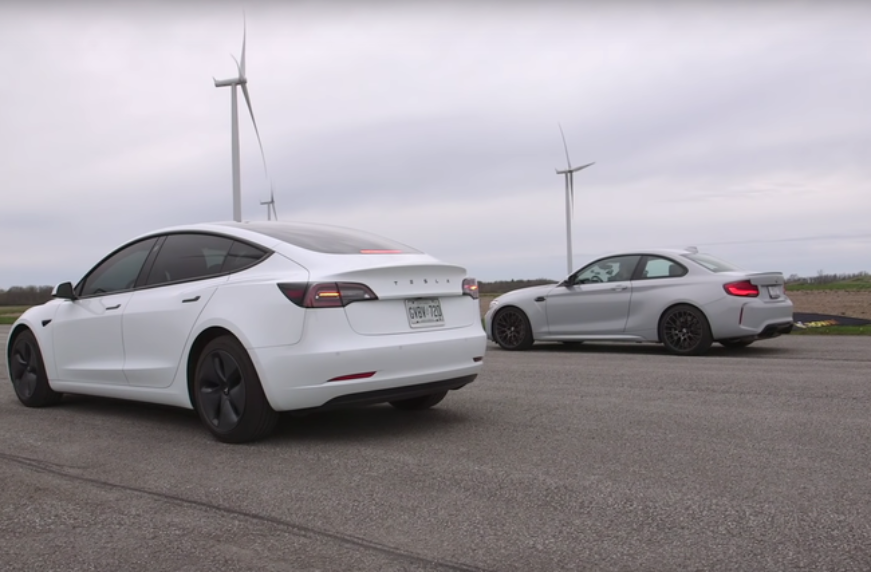 Tesla Model 3 оставила позади самую мощную BMW M2 (видео)