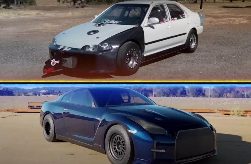 Як все відбувалося, ви можете подивитися в ролику нижче, а поки трохи докладніше про учасників. Автомобілі хоча й близькі за потужністю, з’явилися на світ з розривом у два десятиліття. Honda Civic зійшов з конвеєра у 1994 році, тоді як Nissan GT-R випущений у 2015 році. При цьому обидва суттєво доопрацьовані.