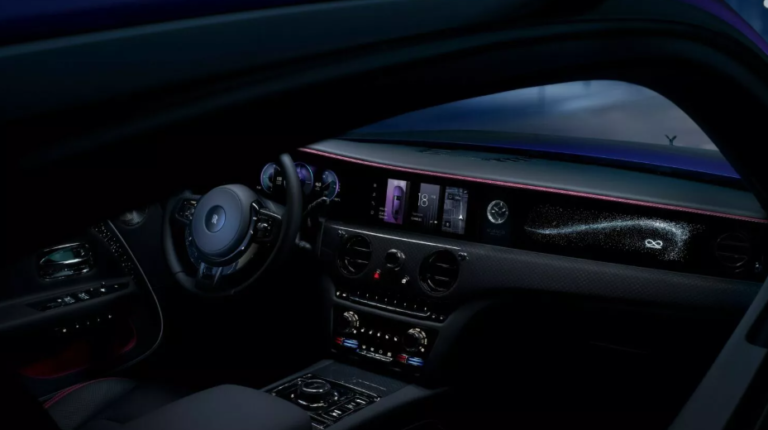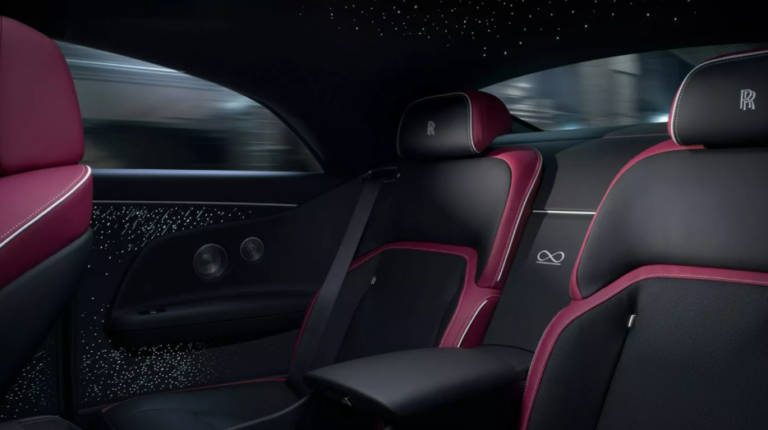 Салон електричного купе виглядає не менш стильно. Його оздоблення виконане з висококласної шкіри, а в якості акцентів використано дерево і карбон. Передню панель авто прикрашає вставка з 5500 зірками та символом нескінченності. На дверних картах є аналогічна розсип зірок. Підсвітка стелі імітує зоряне небо. Також є накладки на пороги з підвіскою в десяти кольорах. Новинка від Rolls-Royce надійде у продаж найближчим часом за ціною від 600 тисяч доларів.