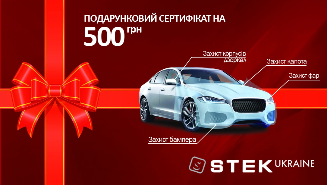 Автомобіліст, якому ви подаруєте сертифікат на обклеювання авто плівкою STEK, багато років буде згадувати вас, оцінюючи вашу турботу. Він перестане турбуватися про зовнішній вигляд автомобіля і зможе більше часу проводити з дорогими йому людьми. [cut_in_three_image_with_text img_1="https://cdn2.autocentre.ua/wp-content/uploads/2018/12/img-8974-1.webp" img_id_1="773730" img_2="https://cdn2.autocentre.ua/wp-content/uploads/2018/12/img-8985.webp" img_id_2="773727" img_3="https://cdn2.autocentre.ua/wp-content/uploads/2018/12/img-9032.webp" img_id_3="773732"][/cut_in_three_image_with_text] Авто, до речі, можна не тільки захистити, а й змінити стайлінг-плівкою. Адже деякі лінійки плівки STEK призначені і для зовнішнього тюнінгу автомобіля. За допомогою них машину можна «перевдягти» в зовсім інший колір. Або ж надати їй матового, перламутрового або карбонового стилю. Ціна сертифікату залежить від бажаної площі обклеювання авто і стартує з 500 грн. Детальніше про продукт читайте на http://stekautomotive.com.ua