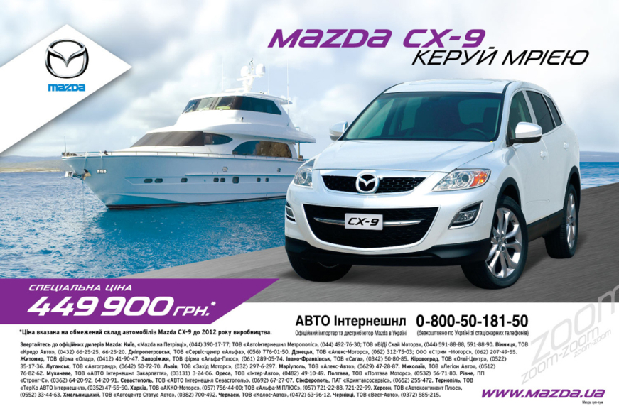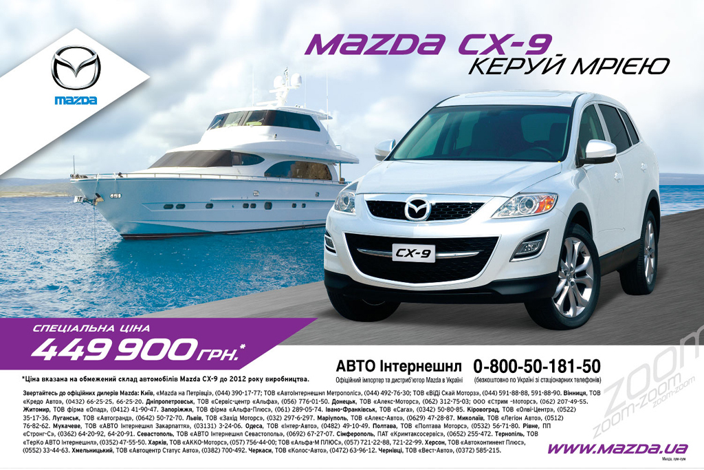 Наступило время управлять мечтой! Акция действует с 14 мая 2012 года и до полной распродажи склада. Дополнительную информацию можно узнать на сайте mazda.ua