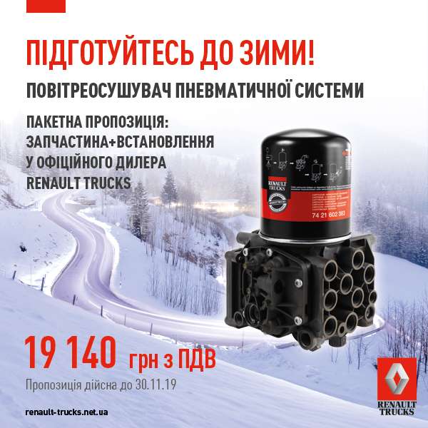 Цінові пропозиції діють за умови придбання і установки запчастин у офіційних дилерів Renault Trucks в Україні. Також на них поширюється дворічна гарантія», – розповів В’ячеслав Савчук, директор департаменту післяпродажного обслуговування і розвитку бізнесу Renault Trucks в Україні.