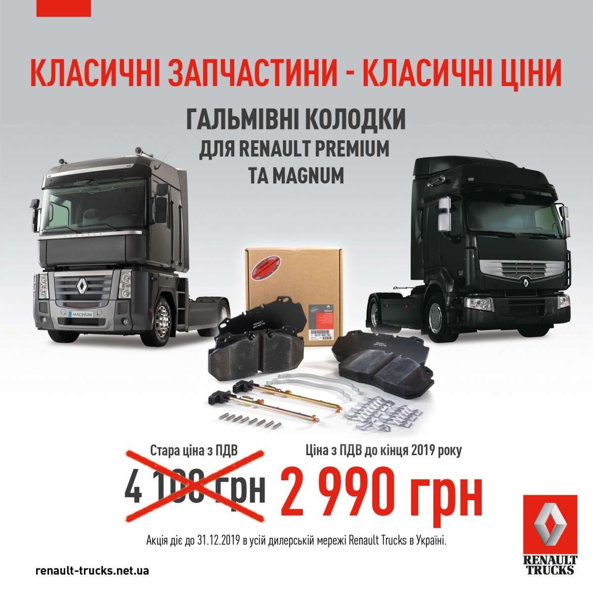 Друга пропозиція зі знижкою 30% доступна власникам класичних моделей Renault Premium і Renault Magnum при заміні гальмівних колодок до кінця 2019 року й заміні повітроосушувача до кінця листопада 2019 року. Незважаючи на те, що моделі Premium і Magnum вже знято з виробництва, вони як і раніше надзвичайно популярні та їх парк в Україні значний. Тому Renault Trucks вирішила розробити кампейн спеціально для цієї групи власників вантажівок Renault.