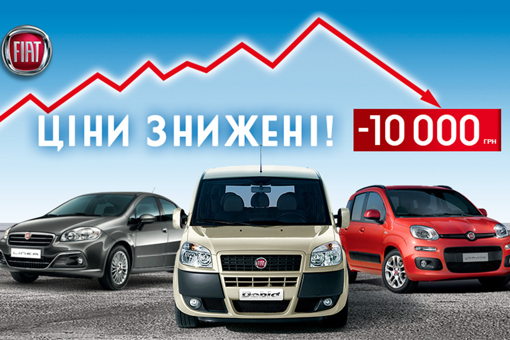 Компания «Италавто» рада сообщить о снижении цен на полюбившиеся украинским автомобилистам модели Fiat. К примеру, на сегодняшний день на такие модели, как Fiat Linea, Fiat Doblo, Fiat Nuova Panda цена снижена на 10000 гривен.