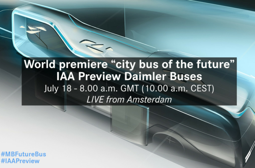 Презентація інноваційного автобуса «сity bus of the future» від підрозділу Daimler Buses відбудеться в Амстердамі, 18 липня, о 10 годині за центрально-європейським літнім часом (СЕЅТ). Це буде передпрем’єрний показ машини, а світовий її дебют відбудеться на осінньому автосалоні комерційних автомобілів IAA-2016 в Ганновері.