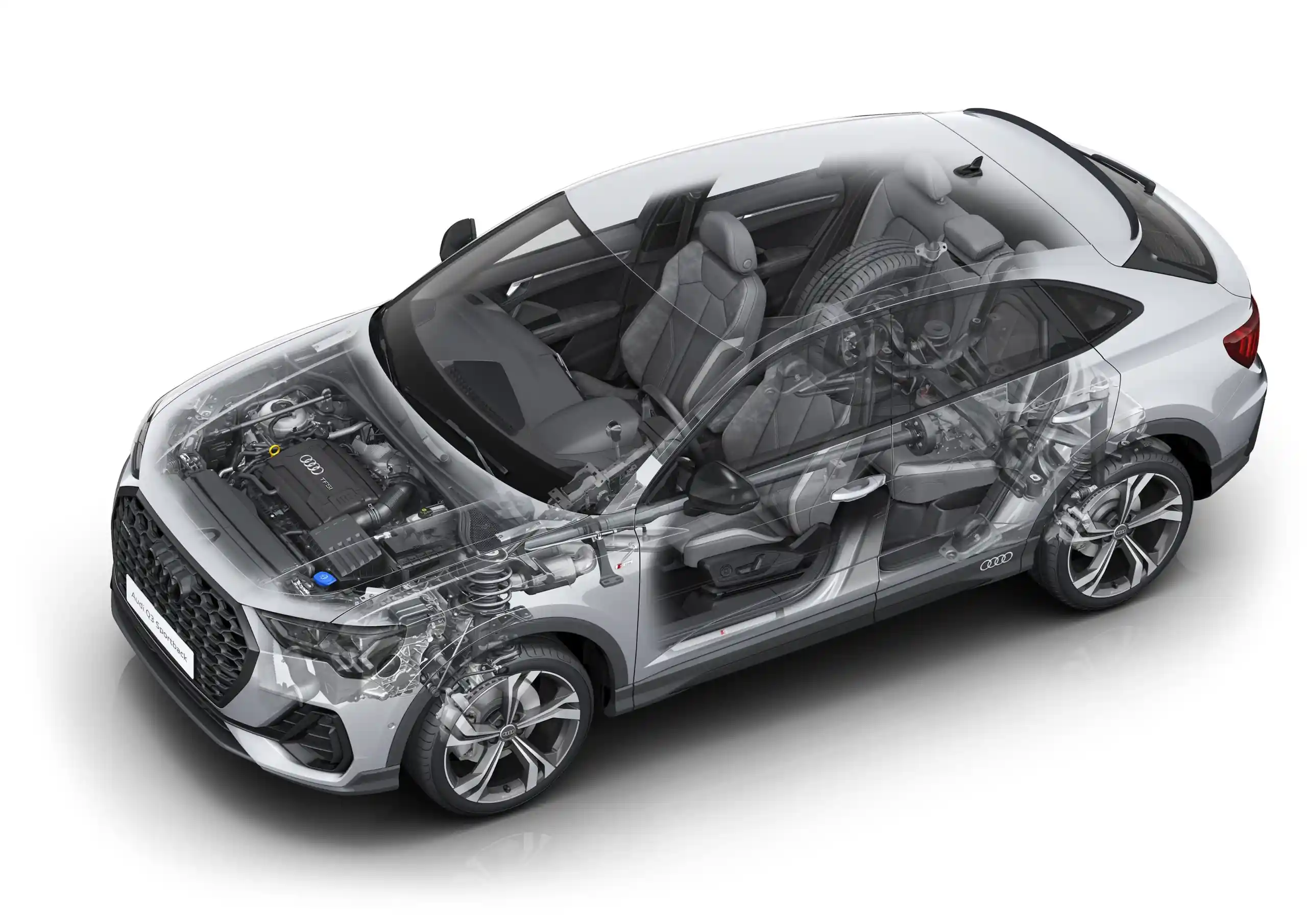 Традиційно бренд Audi широкий перелік допоміжних систем, які роблять авто зручнішим та безпечнішим. Зокрема, чотири камери кругового огляду дозволяють контролювати зону безпосередньо навколо Audi Q3 Sportback. За допомогою дисплею MMI можна вибирати різні режими подання та зручно виконувати маневри. Доступний як опція адаптивний асистент водіння поєднує функції адаптивного круїз-контролю та асистента ведення смугою і підтримує водія, коли потрібно прискоритись, загальмувати або утримувати певну швидкість чи відстань.