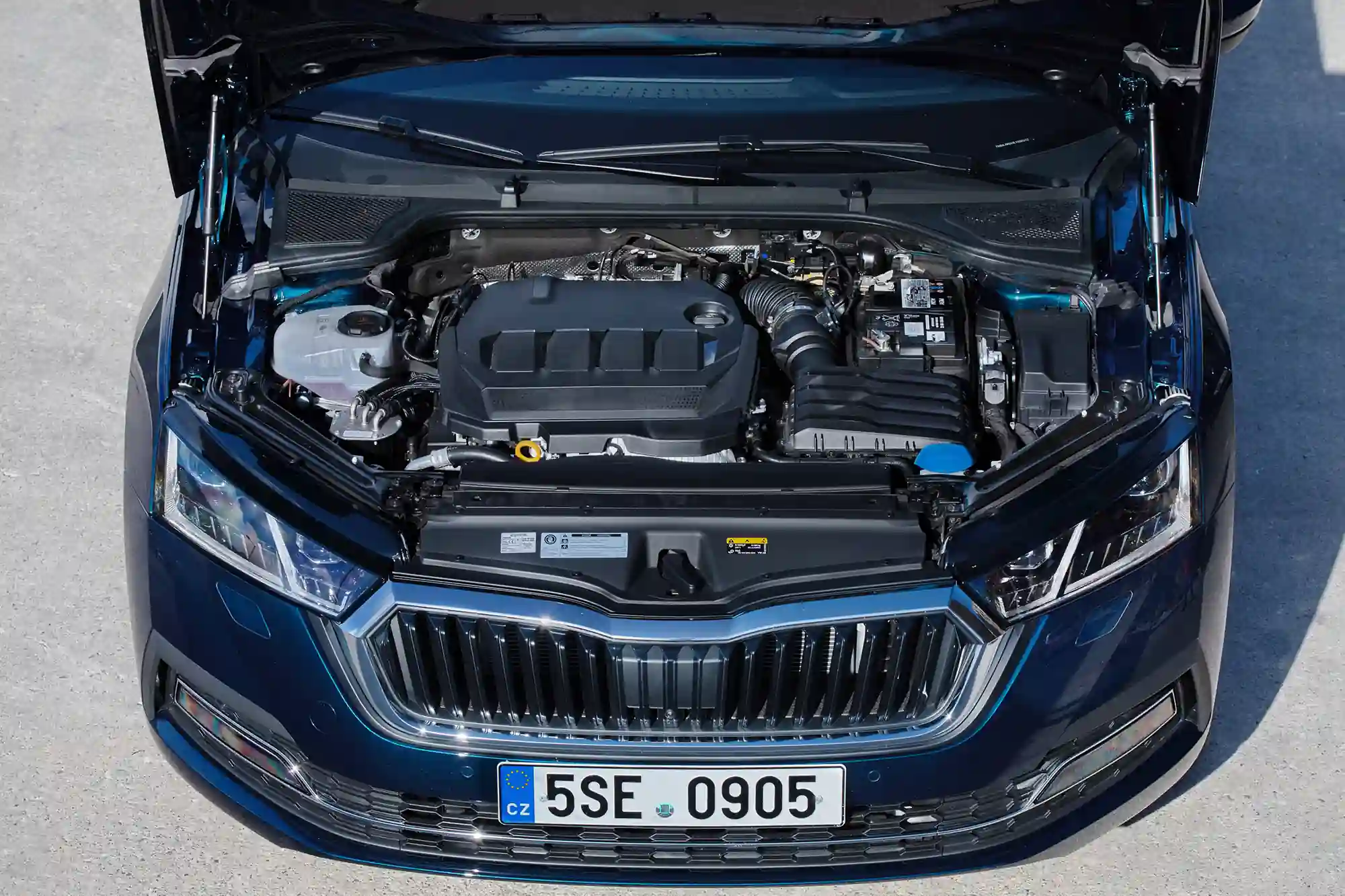 Силовий агрегат гібриду з можливістю підзарядкиOctavia iV складається з бензинового двигуна 1.4 TSI, який розвиває потужність в 156 к.с., та електромотору на 75 кВт (102 к.с.). Проте сумарна потужність установки не дорівнює сумі цих потужностей, а складає 204 к.с., а загальний рівень крутного моменту – 350 Нм. Плагін-гібрид Octavia оснащується тільки 6-ступінчастою коробкою передач DSG.