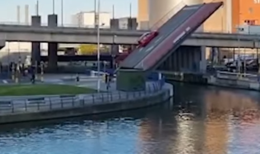 Розвідний міст Марії Тумас почав відкриватися для того, щоб пропустити корабель через невеликий канал, в той час, коли на ньому перебував автомобіль. Машина на кілька секунд зависла буквально перпендикулярно землі, а потім почала повільно скочуватися вниз. Перш ніж вдаритися об асфальт компактний хетчбек перекинувся на дах. У салоні машини перебувала сім’я з однорічною дитиною.