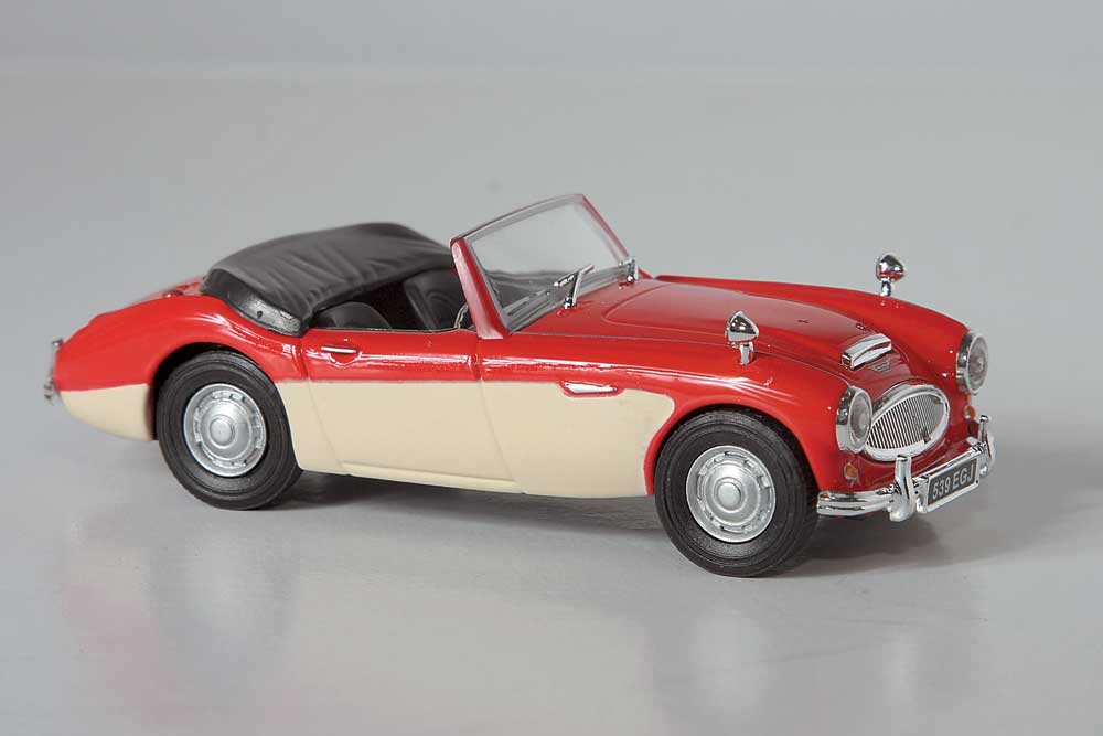 История британской марки Austin-Healey началась в 1952 году, когда талантливый дизайнер и конструктор Дональд Хили представил на Лондонском автошоу оригинальный двухместный родстер на узлах и агрегатах малолитражки Austin A90 Atlantic. Автомобиль произвел неизгладимое впечатление на директора компании Austin Леонарда Лорда, который предложил Хили всяческую поддержку для организации серийного выпуска этой модели. Спустя некоторое время было основано совместное предприятие Austin-Healey. В 1959 г. автомобиль модернизировали и установили более мощный 3,0-литровый рядный шестицилиндровый мотор, в честь которого машина получила индекс 3000. С таким «сердцем» Austin-Healey 3000 мог с легкостью разгоняться до 185 км/ч. Благодаря скоростным и динамическим характеристикам автомобиль снискал популярность у многих известных гонщиков того времени и регулярно выходил на старт престижных соревнований по обе стороны Атлантики. Один из Austin-Healey 3000 принадлежал Брюсу Рейнольдсу, знаменитому участнику банды, ограбившей в 1963 году почтовый поезд в Великобритании и похитившей 2,5 млн. фунтов. Модель в масштабе 1:43 изготовлена немецкой компанией Schuco.
