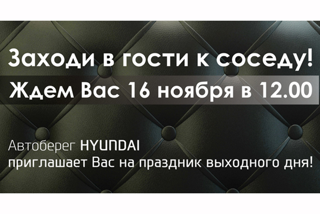 Компания «Автоберег», официальный дилер ООО «Хюндай Мотор Украина», приглашает Вас к себе в гости. Настоящий праздник выходного дня состоится 16 ноября 2013 на территории автоцентра на Усенко 8.