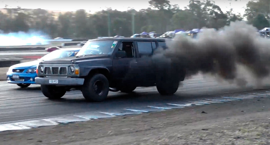 Но умелец из Австралии демонстрирует, похоже, самое бесполезное применение подобной силовой установки. Оснастив свой старый внедорожник Ниссан Патрол турбированным дизельным двигателем V8 GM Duramax и произведя некоторые модификации, он хвастает безумным количеством отвратительного черного дыма.