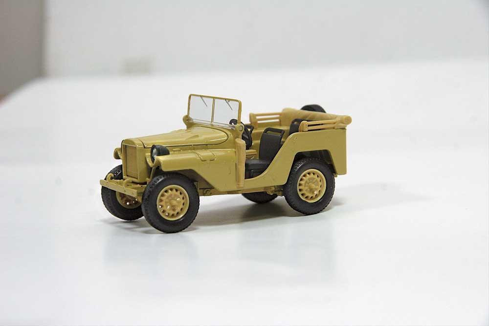 Задание на разработку первого советского внедорожника было дано в январе 1941 года. Под руководством ведущего конструктора «ГАЗа» Виталия Грачева автомобиль, получивший обозначение ГАЗ-64, создали в рекордно короткие сроки: за 51 сутки – с 3 февраля по 25 марта 1941 года, что во многом объяснялось широкой унификацией модели с серийно выпускавшимися в то время автомобилями ГАЗ-61, ГАЗ-ММ и ГАЗ-М1. В апреле 1941-го ГАЗ-64 успешно прошел испытания на полигоне РККА, а в августе были изготовлены серийные образцы. На шасси внедорожника с апреля 1942-го по июнь 1943-го выпускался бронеавтомобиль БА-64. В 1943-м на смену ГАЗ-64 пришел ГАЗ-67 с расширенной колеей и другими изменениями. Мотор от «полуторки» ГАЗ-ММ в 2,3 л мощностью 50 л. с. позволял развивать на трассе до 100 км/ч. Модель в масштабе 1:43 изготовлена китайской компанией Hongwell в серии «Наш автопром».