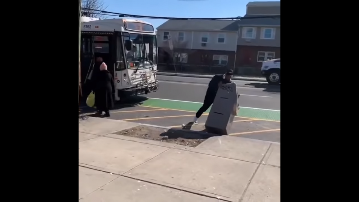 Как мужчина пытался сесть в автобус с украденным банкоматом (видео)
