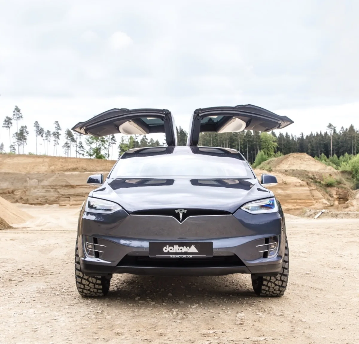 Компания Delta 4x4, специализирующаяся на выпуске экстремальных колес для автомобилей, "переобула" электрический кроссовер Tesla Model X. Таким образом, популярную модель компании Илона Маска приспособили для бездорожья.
