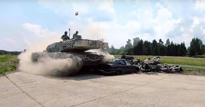 Для танкистов это однозначное веселье, а для нас - наглядное доказательство тому, почему лучше не оставлять автомобиль на пути следования тяжелой военной машины.