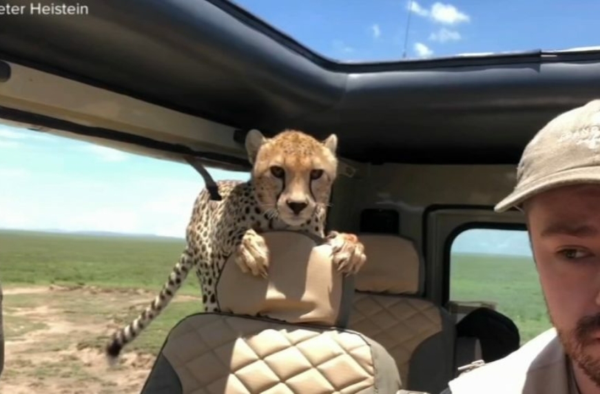Дело было в Африке. Два гепарда решили рассмотреть остановившийся посреди дороги внедорожник, для чего проникли в его салон. При этом водитель не стал ничего делать – лишь спокойно наблюдал за происходящим. Спустя минут 10 кошки удалились.