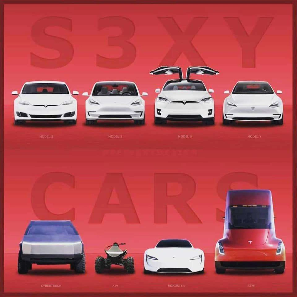 З появою нового пікапа Cybertruck із квадроциклом ATV все нарешті прояснилося: якщо скласти перші літери всіх моделей Tesla, то вийде фраза S3XY CARS.
