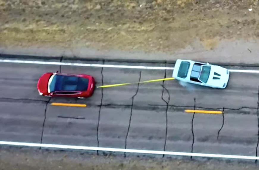 Кто кого: Tesla Model X тянет канат с Chevrolet Camaro (видео)