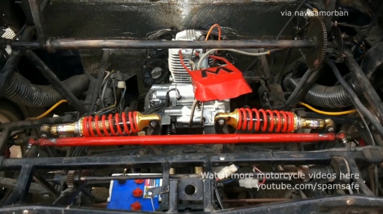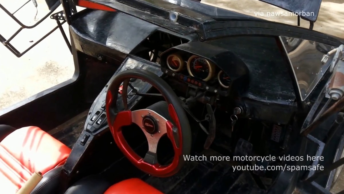 В качестве сердца выбран мотоциклетный двигатель, а кузов построен на основе пространственной рамы. Среди прочих технических изысков – регулируемая подвеска.
