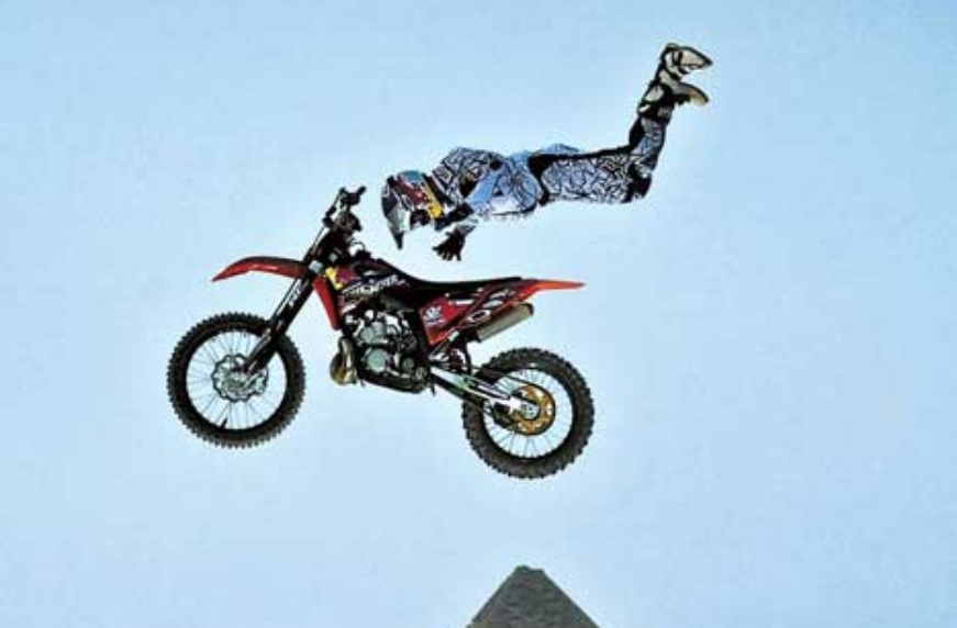 Мировые звезды фристайл-мотокросса в рамках всемирного тура Red Bull X-Fighters Exhibition Tour удивили десять тысяч зрителей в Гизе своими выступлениями у подножия пирамид. Люди с восторгом наблюдали, как райдеры исполняли свои коронные трюки «Супермен», «Цунами», «На краю пропасти», «Сальто назад» перед единственным из семи уцелевших чудес света – пирамидой Хеопса, а также Хефрена и Микерина. В следующем году в Египте, напротив всемирно известного Большого Сфинкса, в Гизе планируют провести один из этапов мирового тура соревнований Red Bull X-Fighters.