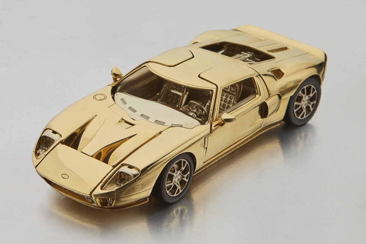 Все дело в том, что он сделан в единственном экземпляре мастерами-ювелирами известной американской компании Ahee Jewelers из множества деталек, выполненных из золота высшей пробы. То есть, эта модель длиною 18 см, в общей сложности весящая 1,5 кг – абсолютно достоверная золотая миниатюрная копия реального спорткара.