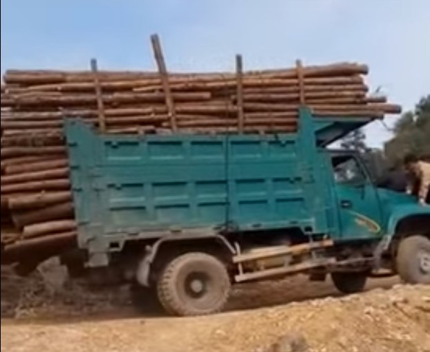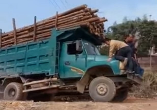 Ко всему прочему, грузовик был перегружен тяжелыми бревнами как минимум в два раза. В конце видео транспортное средство в повороте заезжает на очень крутой склон. Последствия этого безрассудного мероприятия вы можете посмотреть на видео. Отметим только, что “пассажиры” с капота успели вовремя разбежаться.