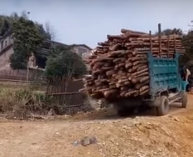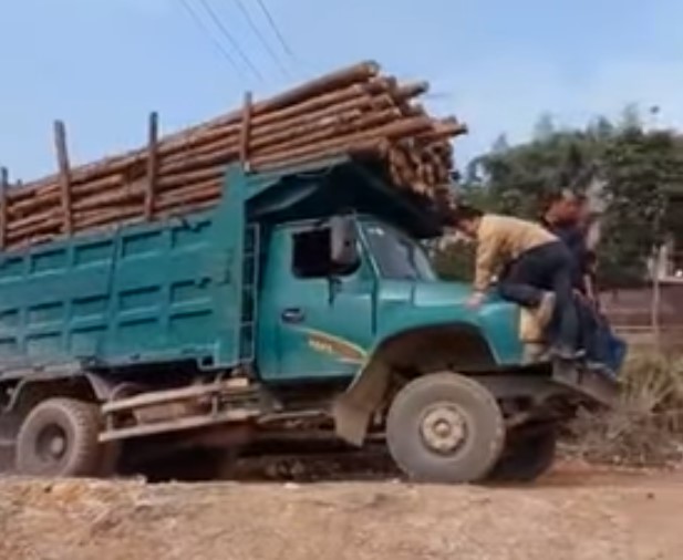 Очевидцы записали на видео аварию с грузовиком, сильно перегруженным бревнами. Стоит отметить, что для развивающихся стран нет ничего необычного в том, чтобы пренебрегать техникой безопасности. Как только в кадре появляется грузовик, на капоте которого с относительным комфортом расположилось несколько человек, стало ясно, что все закончится не очень хорошо.