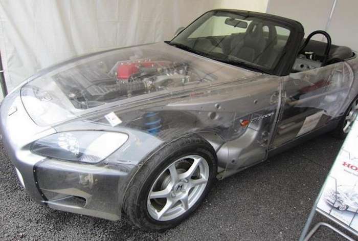 Родстер Honda S2000 сам по себе является довольно любопытной моделью, которая обладала самым мощным в мире четырехцилиндровым мотором без наддува. Видимо, чтобы можно было получше рассмотреть данный силовой агрегат и решили создать версию с полностью прозрачными кузовными панелями.