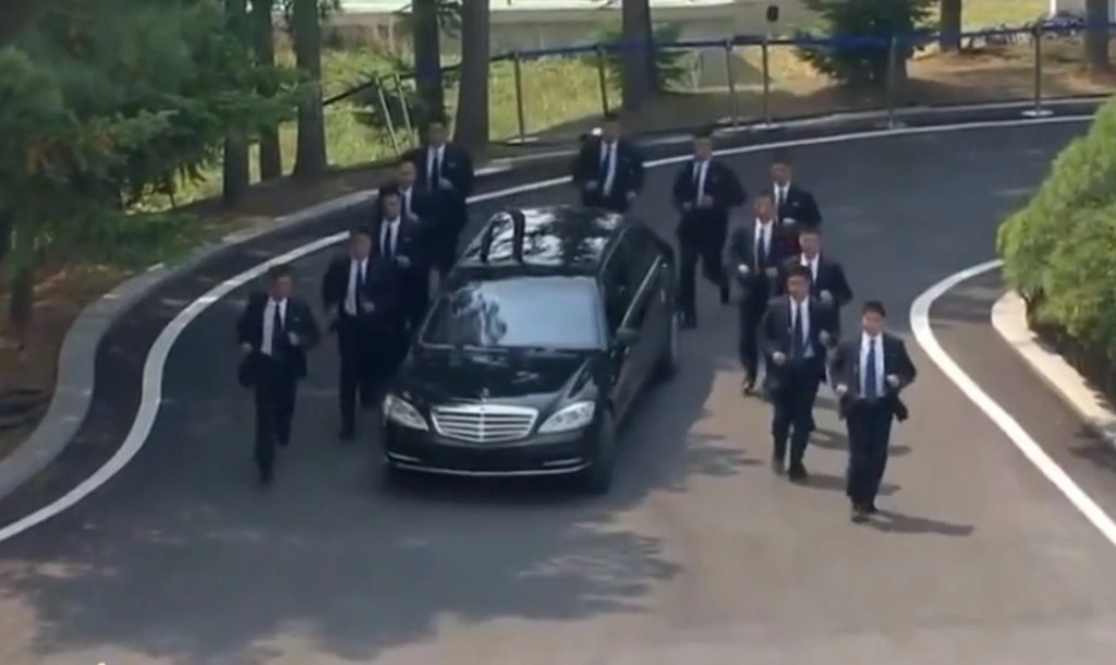 В ходе недавних переговоров между лидерами двух Корей, которые состоялись в Южной Корее, представителям прессы удалось сделать интересные кадры - заснять, как охраняют авто Ким Чен Ына.