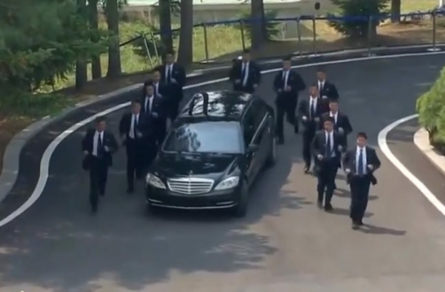 В ходе недавних переговоров между лидерами двух Корей, которые состоялись в Южной Корее, представителям прессы удалось сделать интересные кадры – заснять, как охраняют авто Ким Чен Ына.