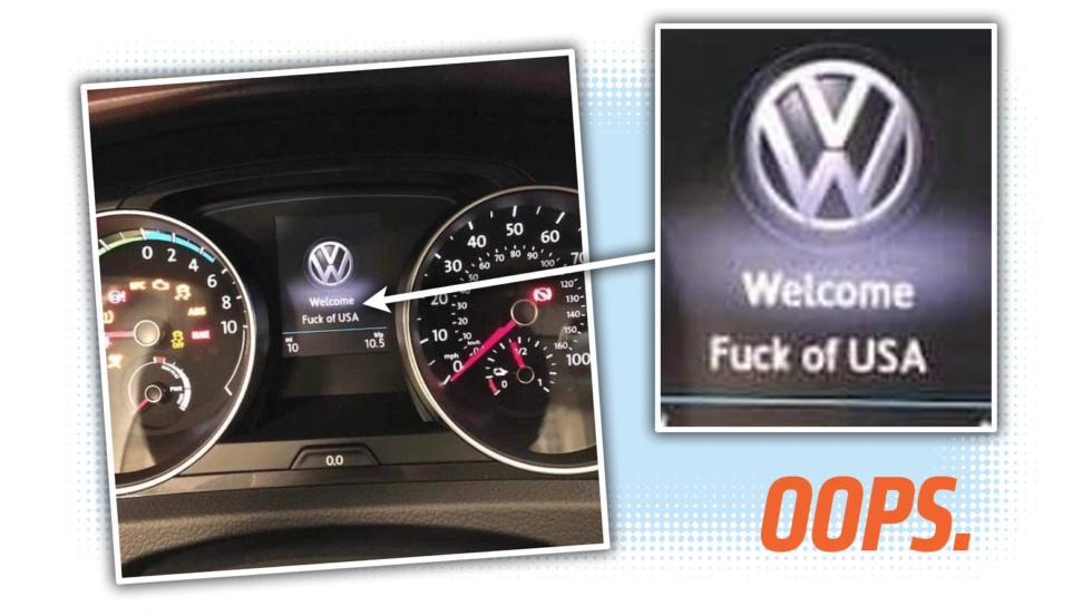 С вами все в порядке, если вы не смогли перевести текст грамотно. И не нужно. Возможно, злоумышленник спешил и не смог воплотить свою задумку как следует? Деликатный момент заметили уже в дилерском центре в Рочестере, штат Нью-Йорк. Теперь необходимо выяснить, прибыли ли на территорию США другие VW с похожим приветствием.