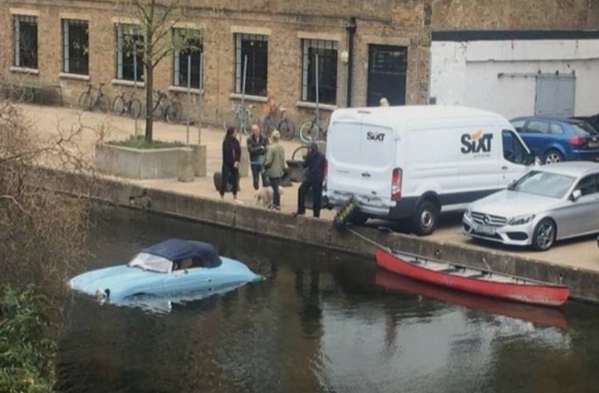 Оцените скорость, с которой фургон вытолкнул аля-Порше в канал. Удивительно, как он не последовал за ним, успев остановиться. Как видно, воды в канале не много, да и никто не пострадал… Но как несчастный автовладелец доберется домой?